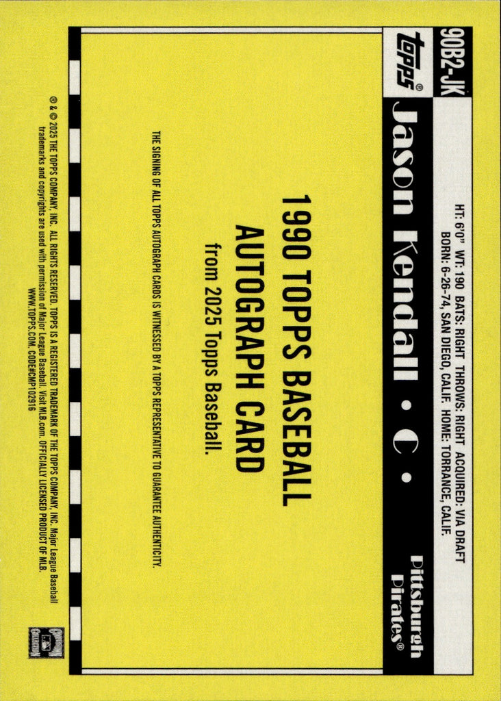 2025 Jason Kendall Topps 1990 AUTOGRAPH AUTO Pittsburgh Pirates #90B2-JK