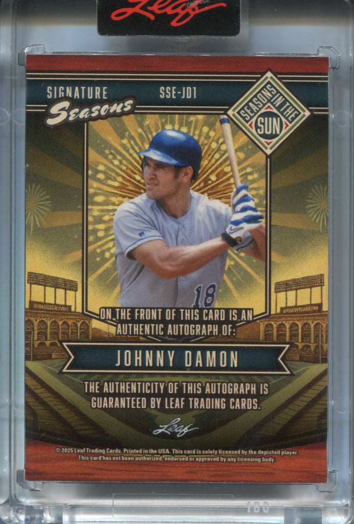 2025 Johnny Damon Leaf Seasons in The Sun RAINBOW FOIL SIGNATURE SERIES AUTO 11/15 AUTOGRAPH #SSE-JD1 New York Yankees