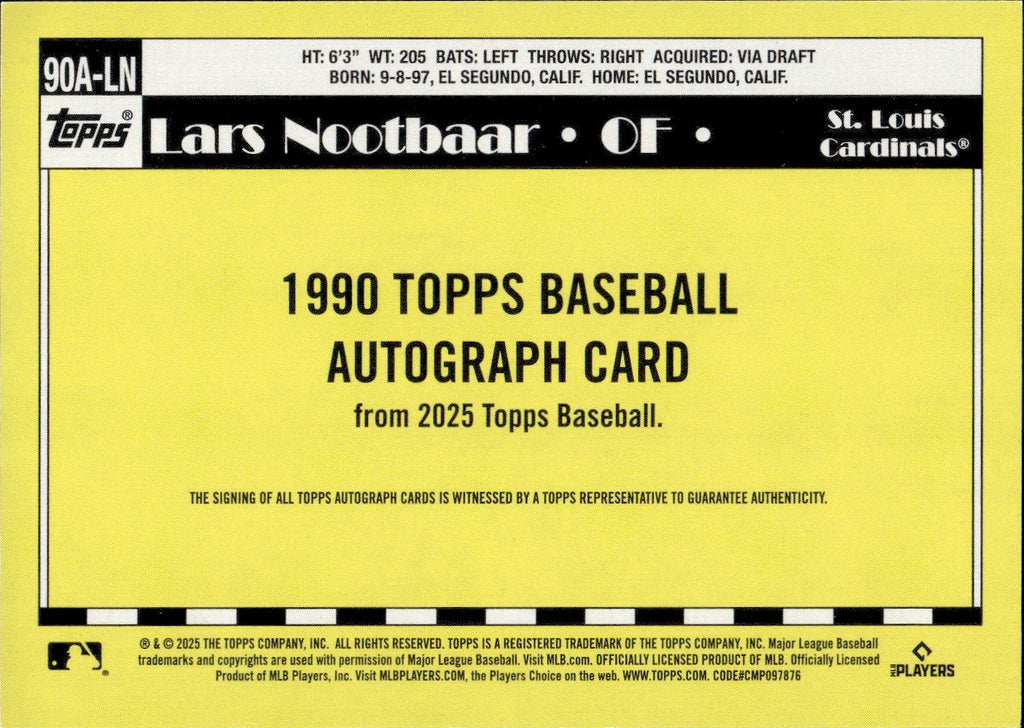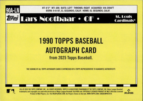 2025 Lars Nootbaar Topps 1990 DESIGN AUTOGRAPH AUTO #90A-LN St. Louis Cardinals