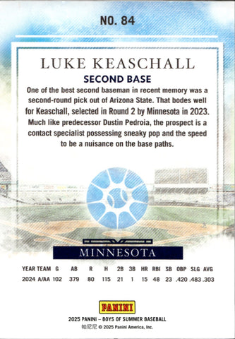 2025 Luke Keaschall Panini Boys Of Summer HOLO SILVER ROOKIE 18/25 RC #84 Minnesota Twins