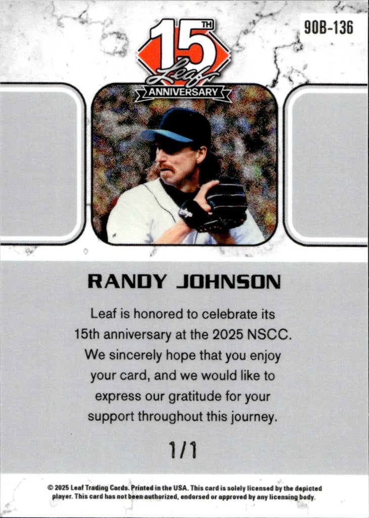 2025 Randy Johnson Leaf 15TH ANNIVERSARY NSCC 1990 LAVA GOLD 1/1 #90B-136 Arizona Diamondbacks