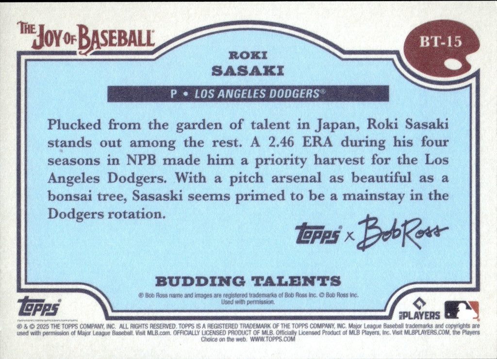 2025  Roki Sasaki Topps X Bob Ross The Joy of Baseball ROOKIE BUDDING TALENTS RC #BT-15 Los Angeles Dodgers