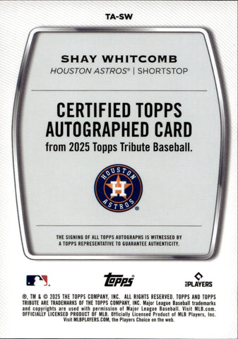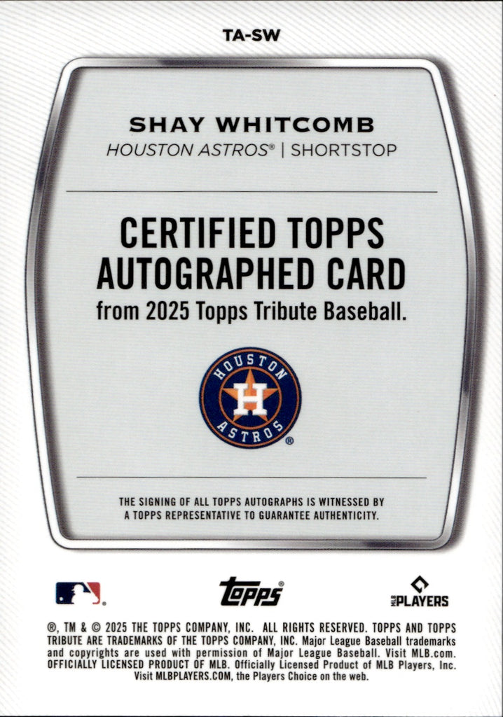 2025 Shay Whitcomb Topps Tribute ROOKIE AUTO 170/199 AUTOGRAPH RC #TA-SW Houston Astros