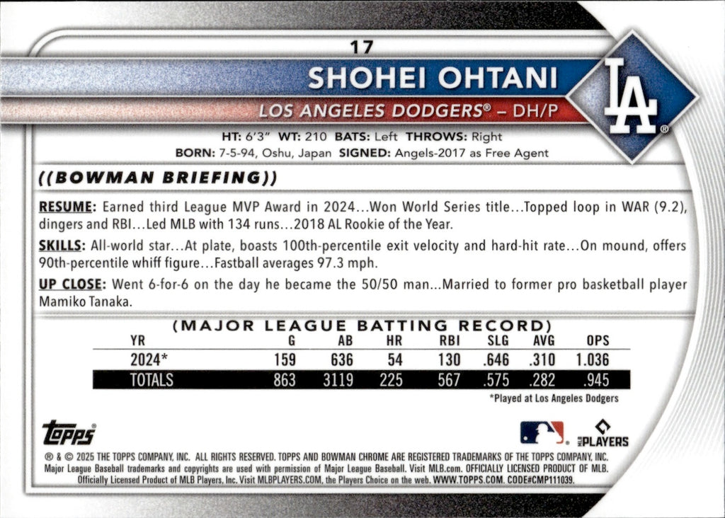 2025 Shohei Ohtani Bowman Chrome MEGA BOX MOJO #17 Los Angeles Dodgers