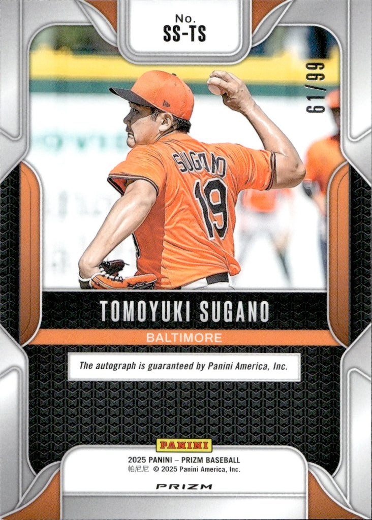 2025 Tomoyuki Sugano Panini Prizm SENSATIONAL SIGNATURESN RED PULSAR AUTO ROOKIE 61/99 AUTOGRAPH RC #SS-TS Baltimore Orioles
