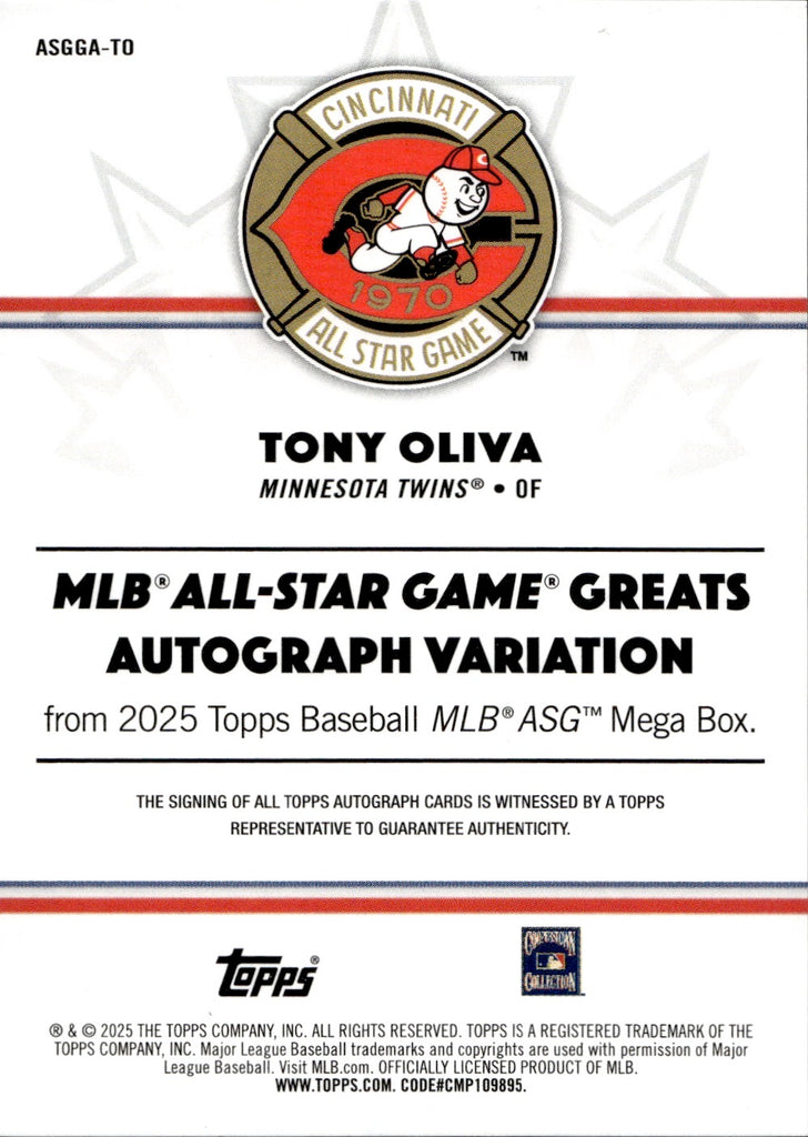 2025 Tony Oliva Topps ASG Mega Box ALL-STAR GAME GREATS RED FOIL AUTO 4/5 AUTOGRAPH #ASGGA-TO Cincinnati Reds HOF