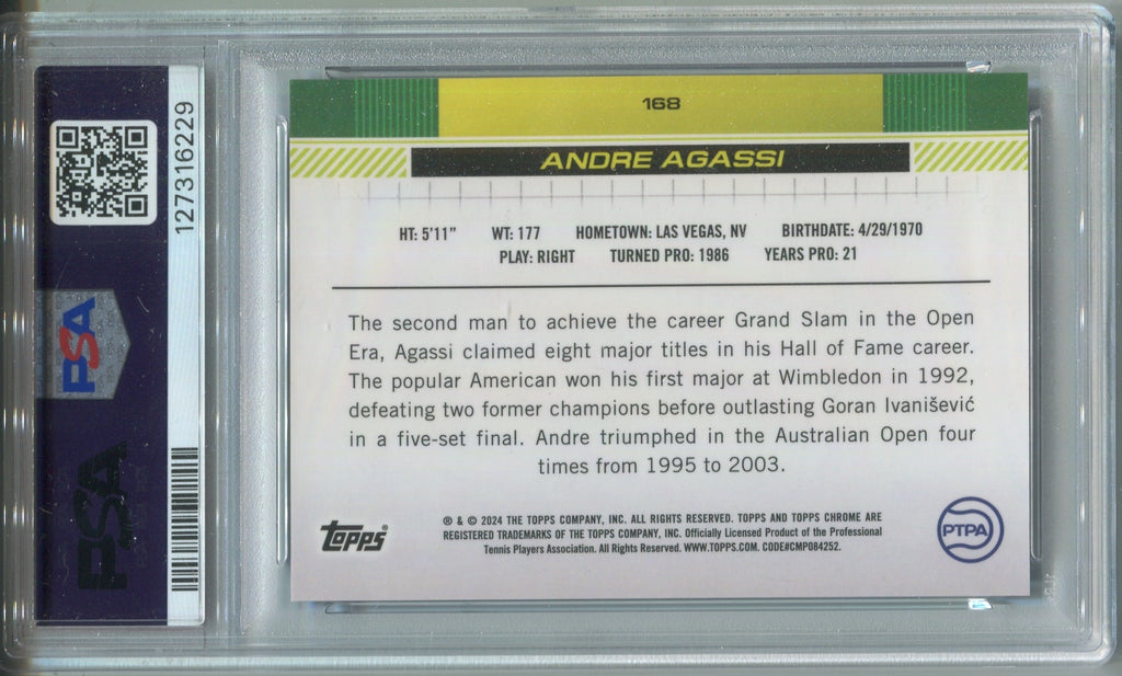 2024 Andre Agassi Topps Chrome BLUE REFRACTOR 154/250 PSA 10 #168 Tennis 6229