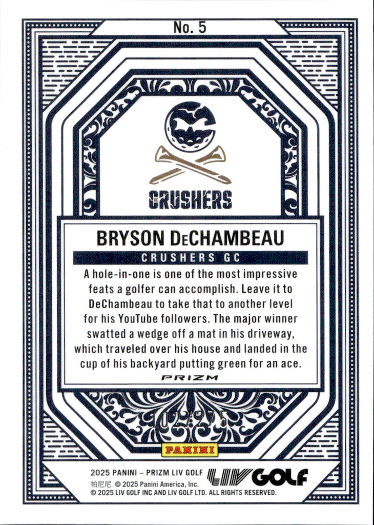 2025 Bryson DeChambeau Panini Prizm LIV Golf ACES PRIZMS TEAL 102/275 #5