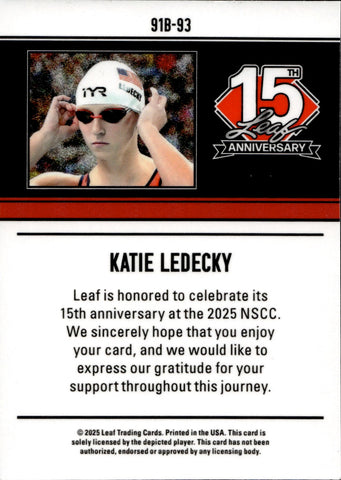 2025 Katie Ledecky Leaf 15th Anniversary NSCC 1991 DESIGN GOLD SHIMMER 1/1 ONE OF ONE #91B-93 USA Swimming