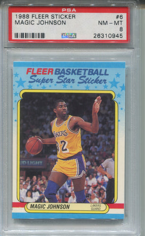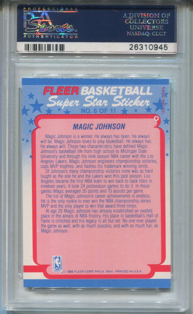 1988-89 Magic Johnson Fleer Sticker PSA 8 #6 Los Angeles Lakers HOF 0945