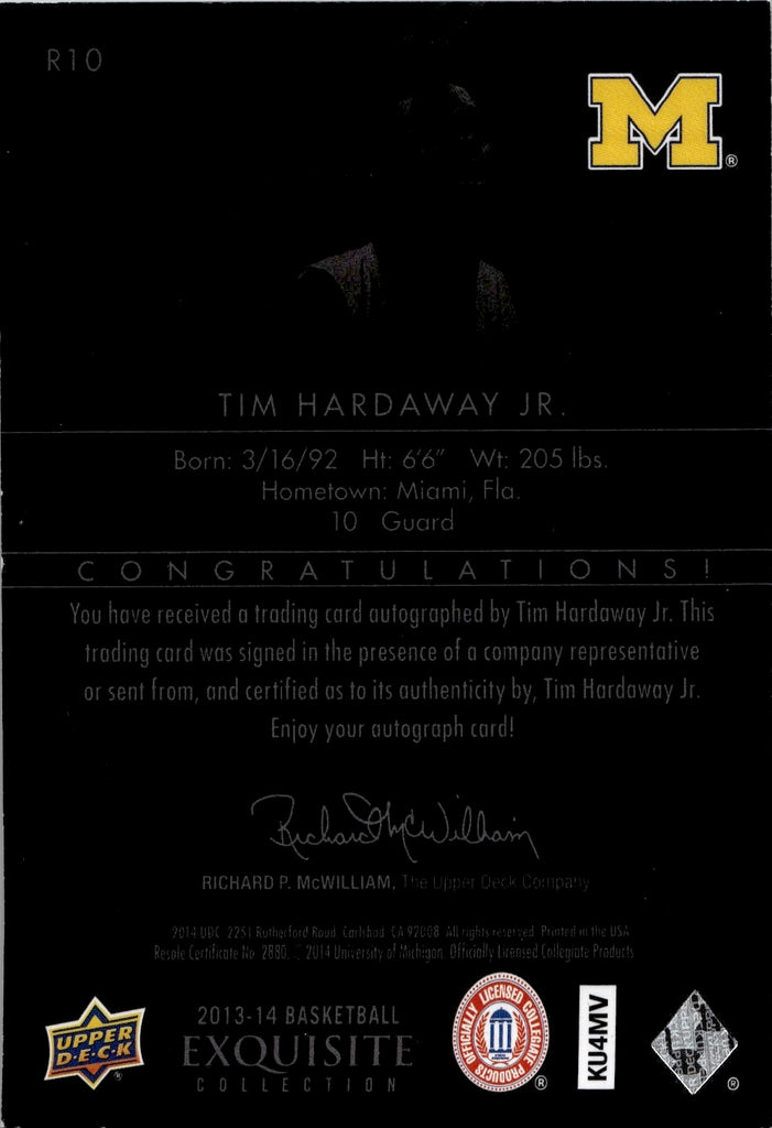 2013-14 Tim Hardaway Jr. Upper Deck Exquisite BLACK ROOKIE AUTO Michigan Wolverines #R10