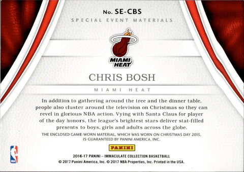 2016-17 Chris Bosh Panini Immaculate SPECIAL EVENT MATERIALS JERSEY 59/99 RELIC #SE-CBS Miami Heat HOF
