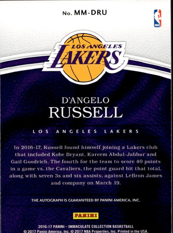 2016-17 D'Angelo Russell Panini Immaculate MODERN MARKS AUTO 31/99 AUTOGRAPH #MM-DRU Los Angeles Lakers