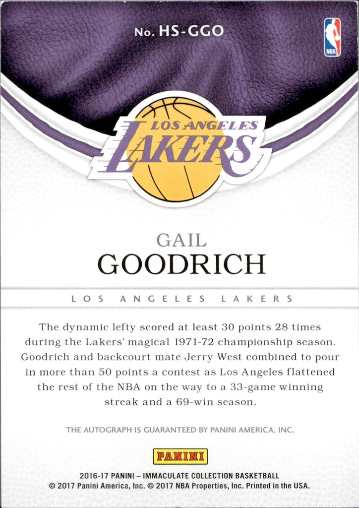 2016-17 Gail Goodrich Panini Immaculate HERALDED SIGNATURES AUTO 24/99 AUTOGRAPH #HS-GGO Los Angeles Lakers