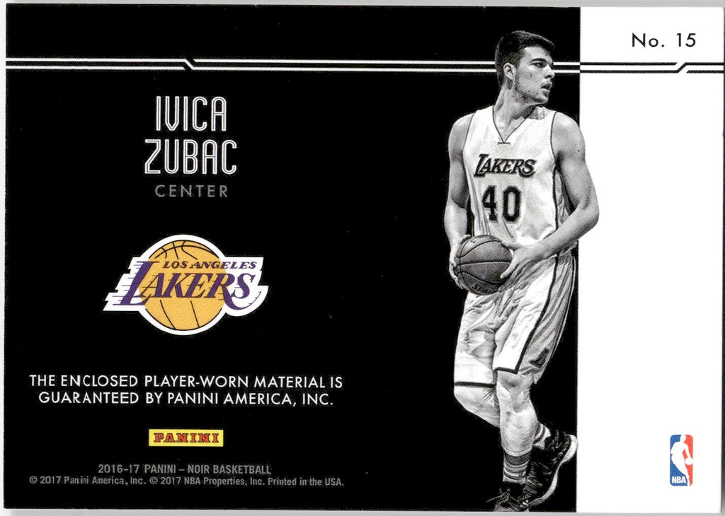 2016-17 Ivica Zubac Panini Noir BLACK & WHITE MATERIALS GAME-WORN JERSEY PATCH 18/25 #15 Los Angeles Dodgers