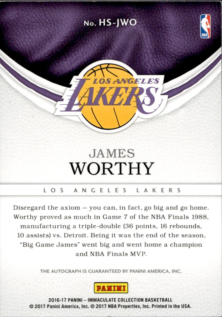 2016-17 James Worthy Panini Immaculate HERALDED SIGNATURES AUTO 13/99 AUTOGRAPH #HS-JWO Los Angeles Lakers HOF