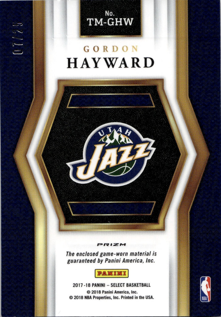 2017-18 Gordon Hayward Panini Select THROWBACK MEMORABILIA TIE DYE PATCH 07/25 RELIC #TM-GHW Utah Jazz