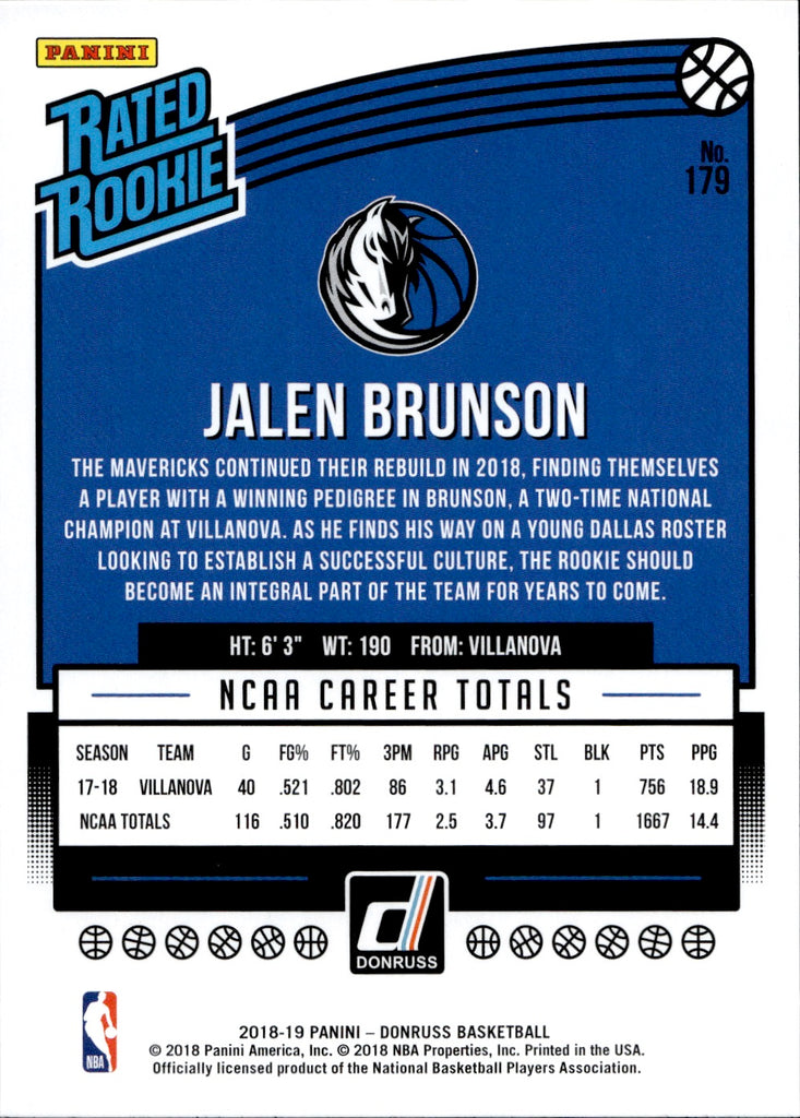 2018-19 Jalen Brunson Panini Donruss ROOKIE Dallas Mavericks #179