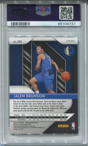 2018-19 Jalen Brunson Panini Prizm GREEN ROOKIE RC PSA 9 #250 Dallas Mavericks 4737