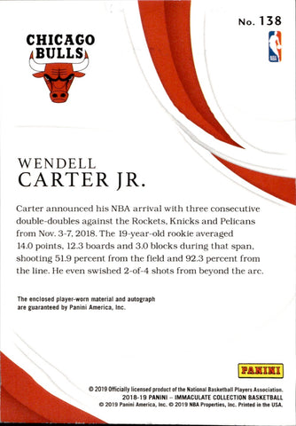 2018-19 Wendell Carter Jr. Panini Immaculate RED ROOKIE PATCH JERSEY AUTO 3/25 Chicago Bulls #138