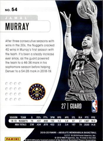 2019-20 Jamal Murray Panini Absolute BLUE 81/99 #54 Denver Nuggets