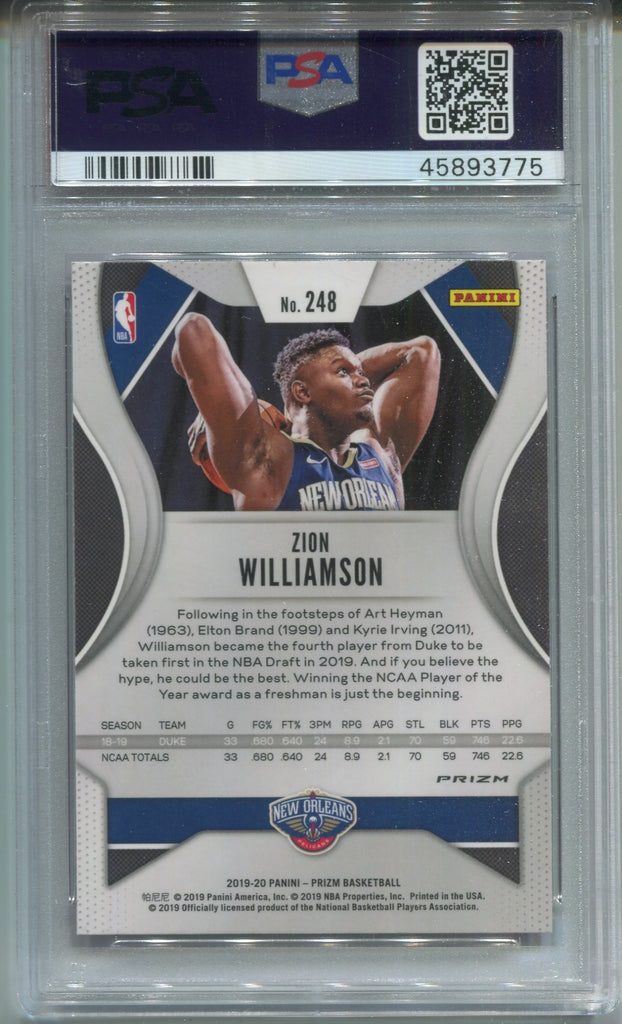 2019-20 Zion Williamson Panini Prizm PINK ICE ROOKIE RC PSA 9 #248 New Orleans Pelicans 3775