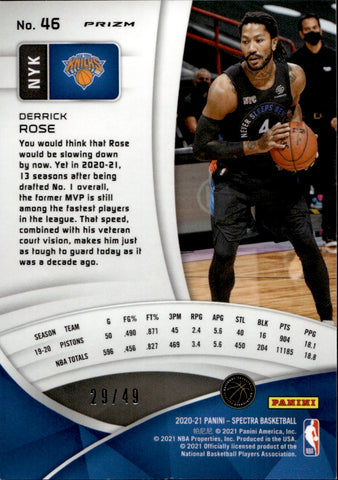 2020-21 Derrick Rose Panini Spectra INTERSTELLAR 29/49 #46 New York Knicks