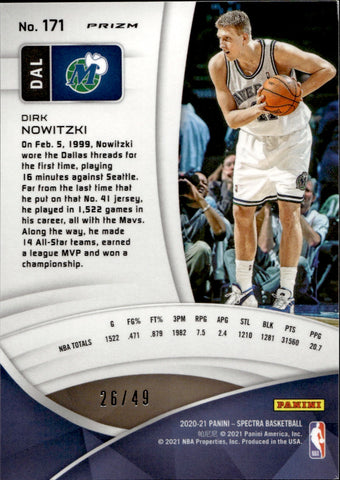 2020-21 Dirk Nowitzki Panini Spectra INTERSTELLAR SPECTRACULAR DEBUT 26/49 #171 Dallas Mavericks HOF