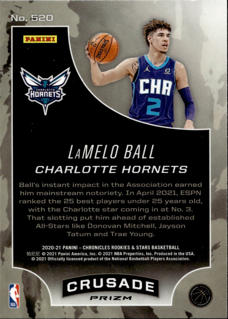 2020-21 LaMelo Ball Panini Chronicles ROOKIES & STARS HOLO SILVER CRUSADE ROOKIE RC #520 Charlotte Hornets