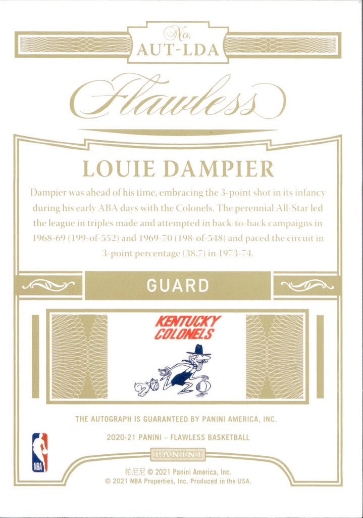 2020-21 Louie Dampier Panini Flawless SIGNATURES SILVER AUTO 13/25 AUTOGRAPH #AUT-LDA Kentucky Colonels