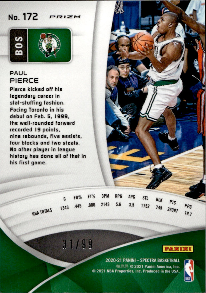 2020-21 Paul Pierce Panini Spectra CELESTIAL SPECTRACULAR DEBUT 31/99 #172 Boston Celitcs HOF