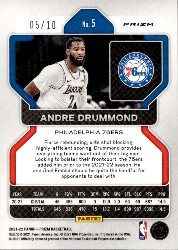 2021-22 Andre Drummond Panini Prizm GOLD SHIMMER SP 05/10 #5 Philadelphia 76ers