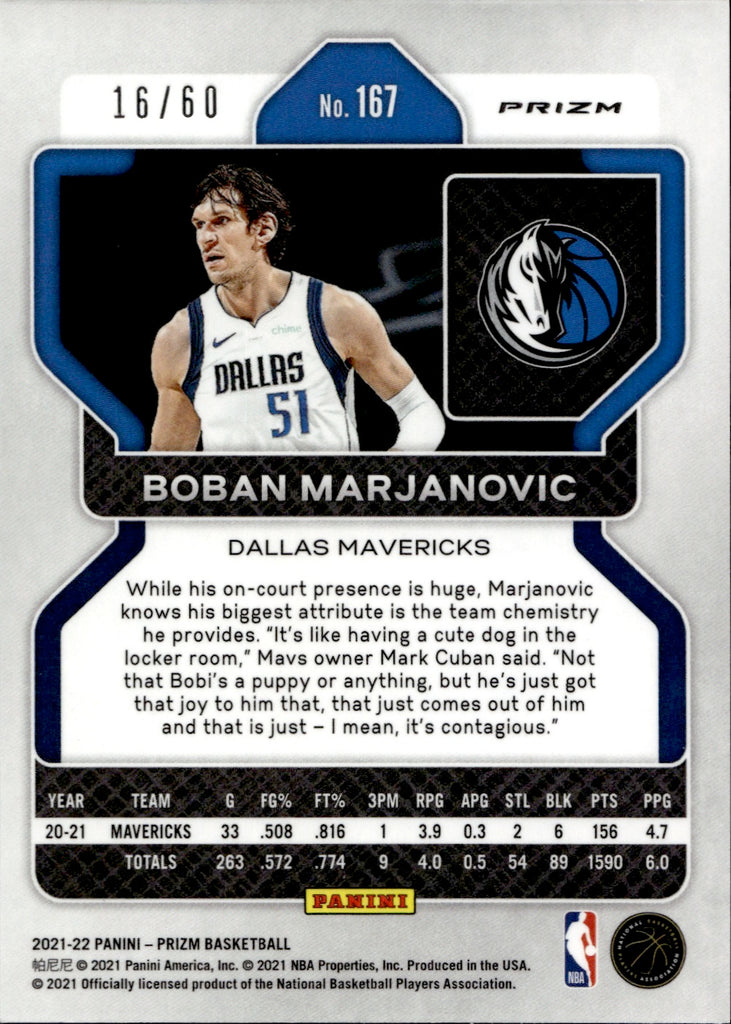 2021-22 Boban Marjanovic Panini Prizm ORANGE WAVE 16/60 #167 Dallas Mavericks