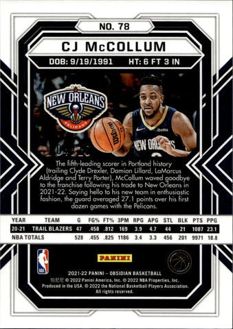 2021-22 CJ McCollum Panini Obsidian GOLD SP 04/10 #78 New Orleans Pelicans