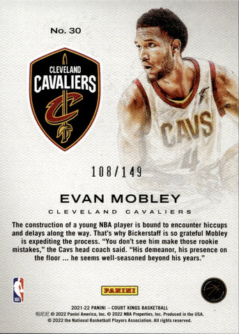 2021-22 Evan Mobley Panini Crown Royale RUBY RED WORK IN PROGRESS ROOKIE 108/149 RC #30 Cleveland Cavaliers