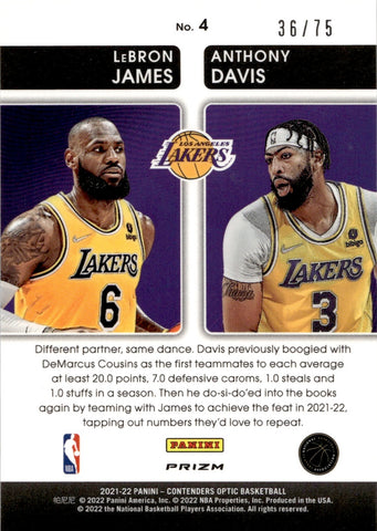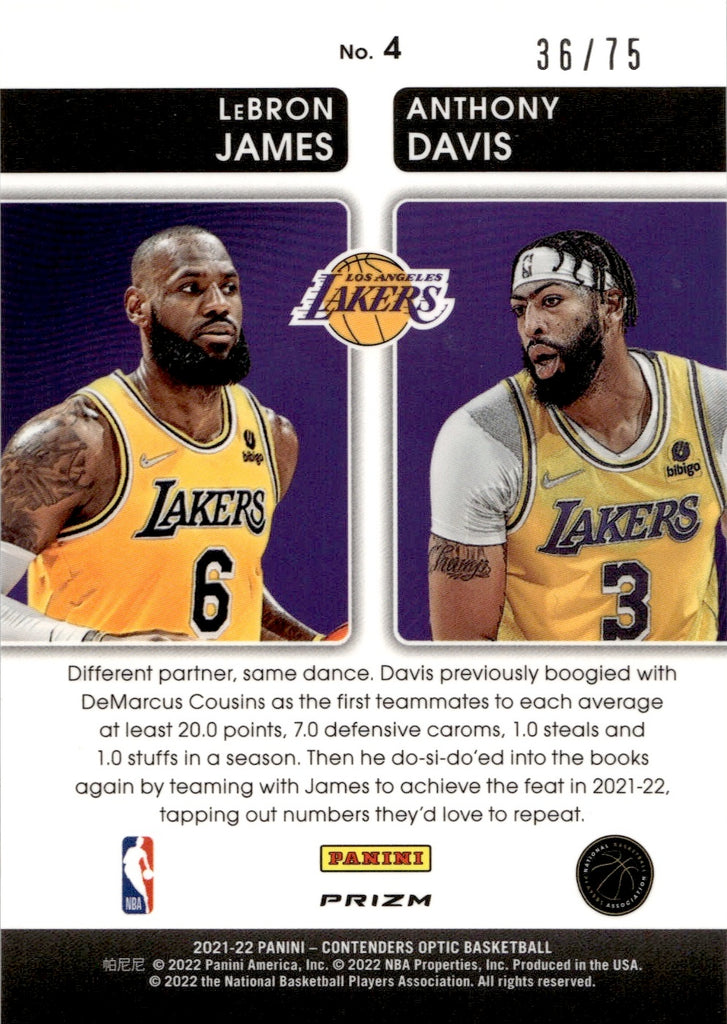 2021-22 LeBron James Anthony Davis Contenders Optic BLUE ICE PICK N ROLL 36/75 #4 Los Angeles Lakers