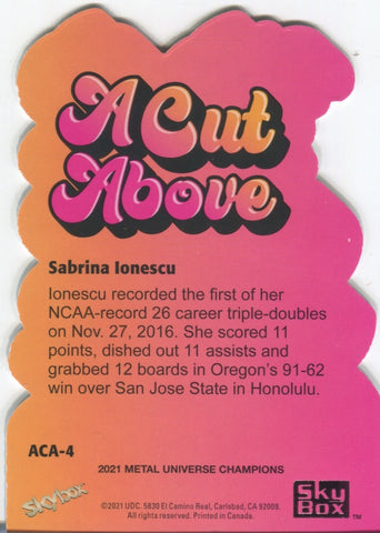 2021 Sabrina Ionescu Skybox Metal Universe Champions A CUT ABOVE #ACA-4 New York Liberty