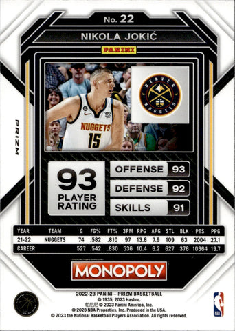 2022-23 Nikola Jokic Panini Prizm Monopoly TEAL WAVE #22 Denver Nuggets