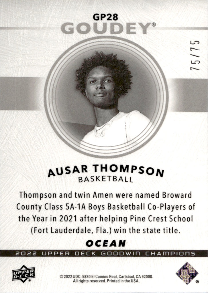 2022 Ausar Thompson Upper Deck Goodwin Champions GOUDEY OCEAN ROOKIE 75/75 RC #GP28 Detroit Pistons
