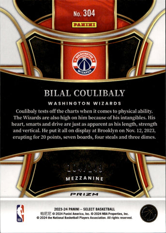 2023-24 Bilal Coulibaly Panini Select MEZZANINE WHITE ROOKIE 104/149 RC #304 Washington Wizards