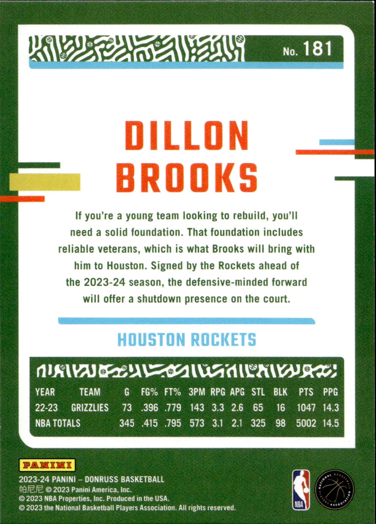 2023-24 Dillon Brooks Panini Donruss Choice BLACK GOLD SP 8/8 #181 Houston Rockets