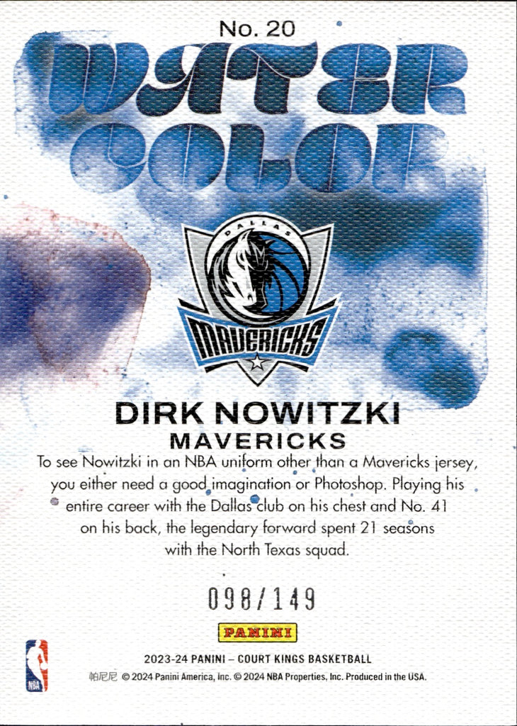 2023-24 Dirk Nowitzki Panini Court Kings RED WATER COLOR 098/149 #20 Dallas Mavericks HOF