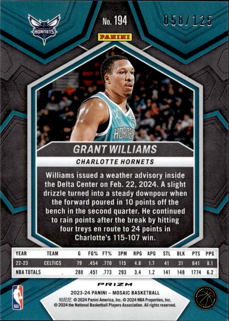 2023-24 Grant Williams Panini Mosaic ICE 58/125 Charlotte Hornets #194