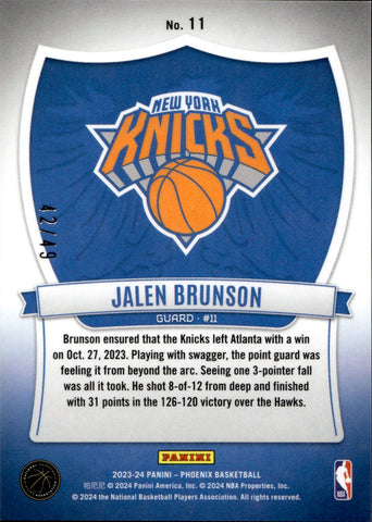 2023-24 Jalen Brunson Panini Phoenix ORANGE CRUSADE 42/49 #11 New York Knicks