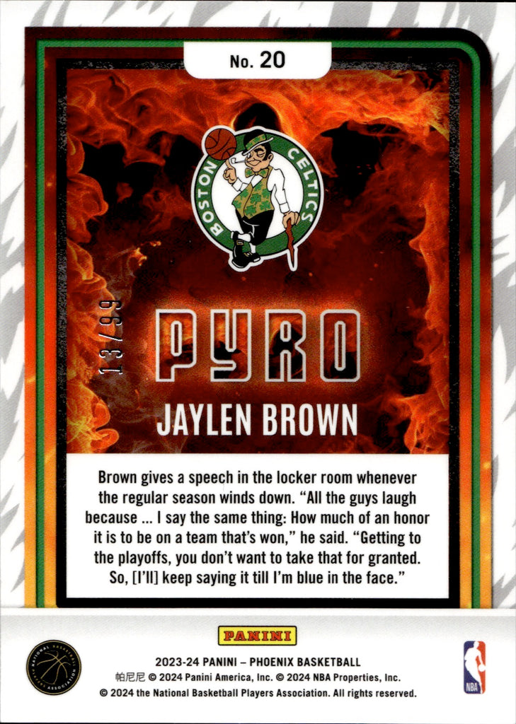 2023-24 Jaylen Brown Panini Phoenix PINK PYRO 13/99 #20 Boston Celtics