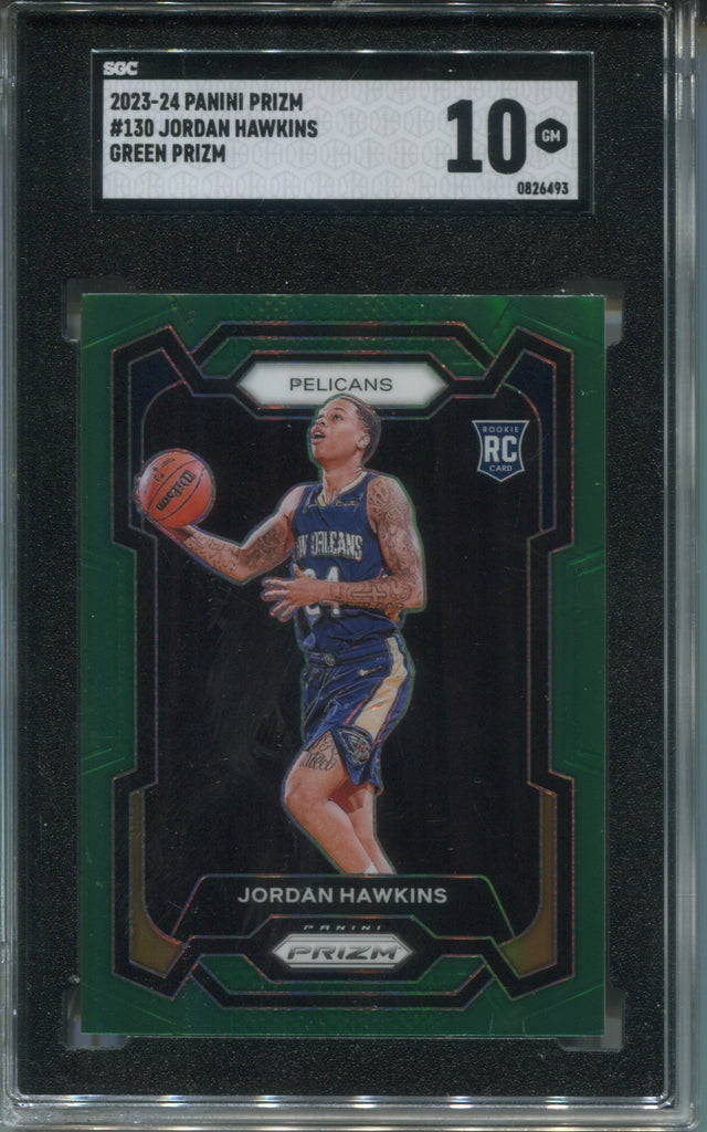 2023-24 Jordan Hawkins Panini Prizm GREEN PRIZM ROOKIE SGC 10 New Orleans Pelicans #130 6493 CASE CRACKED