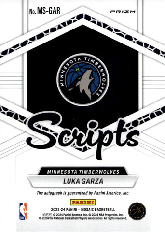2023-24 Luka Garza Panini Mosaic SCRIPTS MOSAIC AUTO Minnesota Timberwolves #MS-GAR