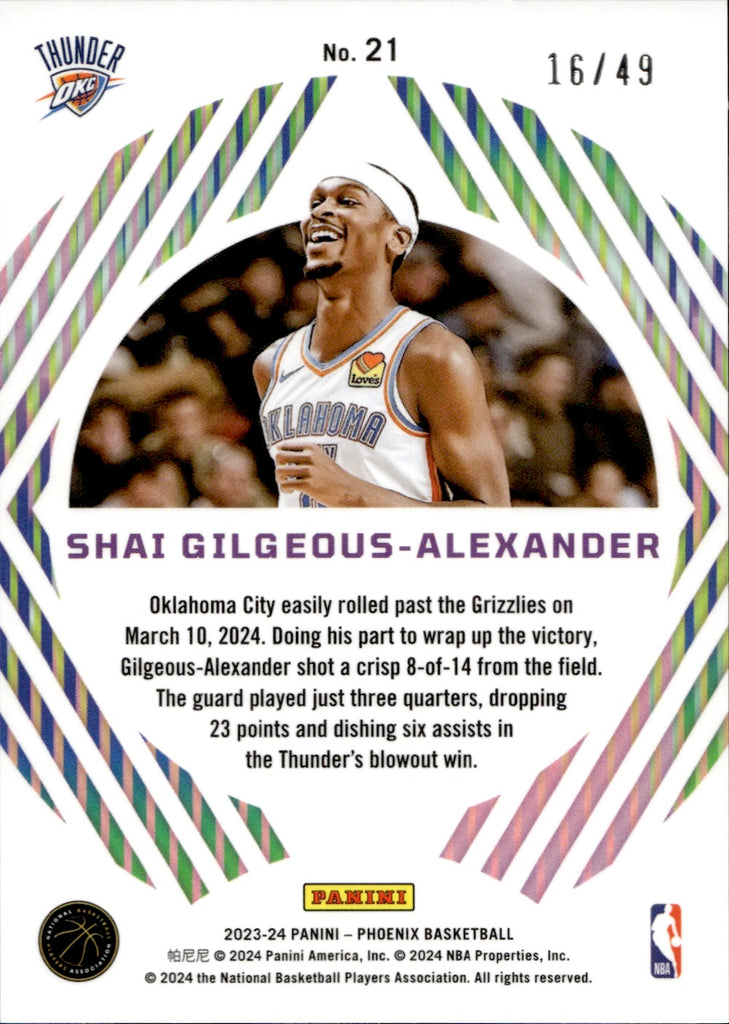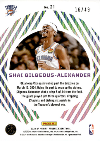 2023-24 Shai Gilgeous-Alexander Panini Phoenix ORANGE MYSTIQUE 16/49 #21 Oklahoma City Thunder MVP
