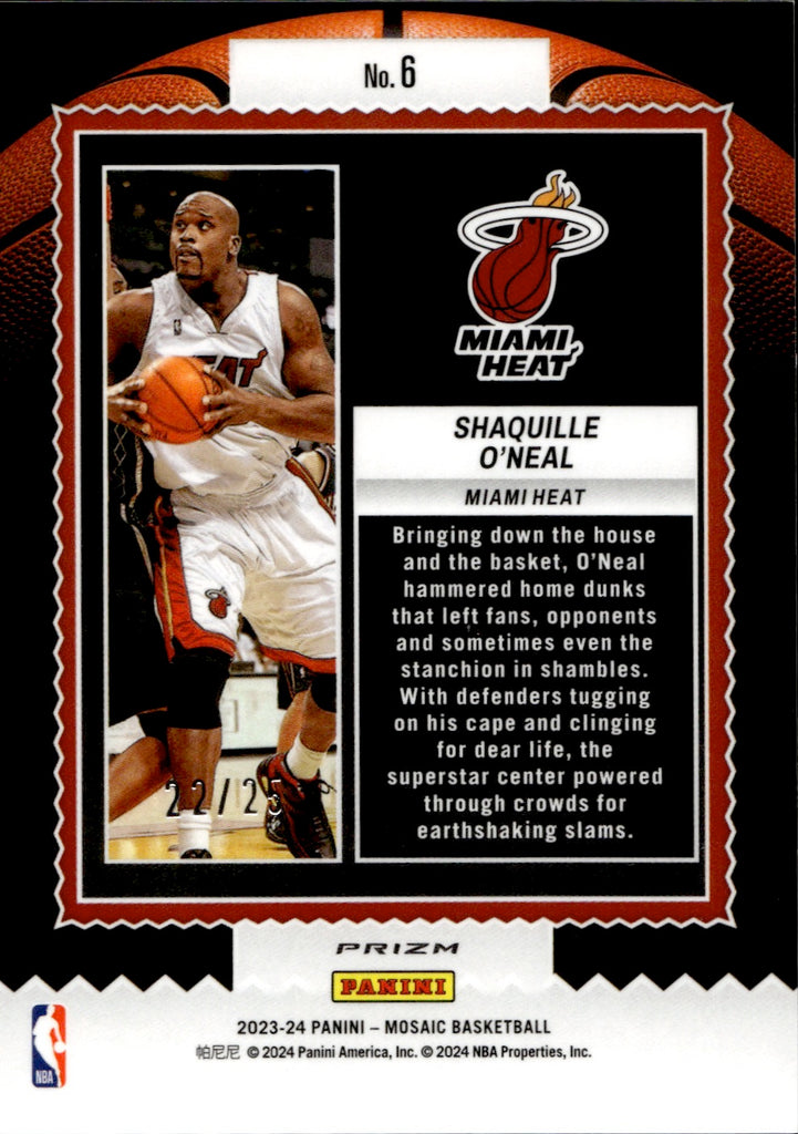 2023-24 Shaquille O'Neal Panini Mosiac ORANGE FLOURESCENT JAM MASTERS 22/25 #6 Miami Heat HOF