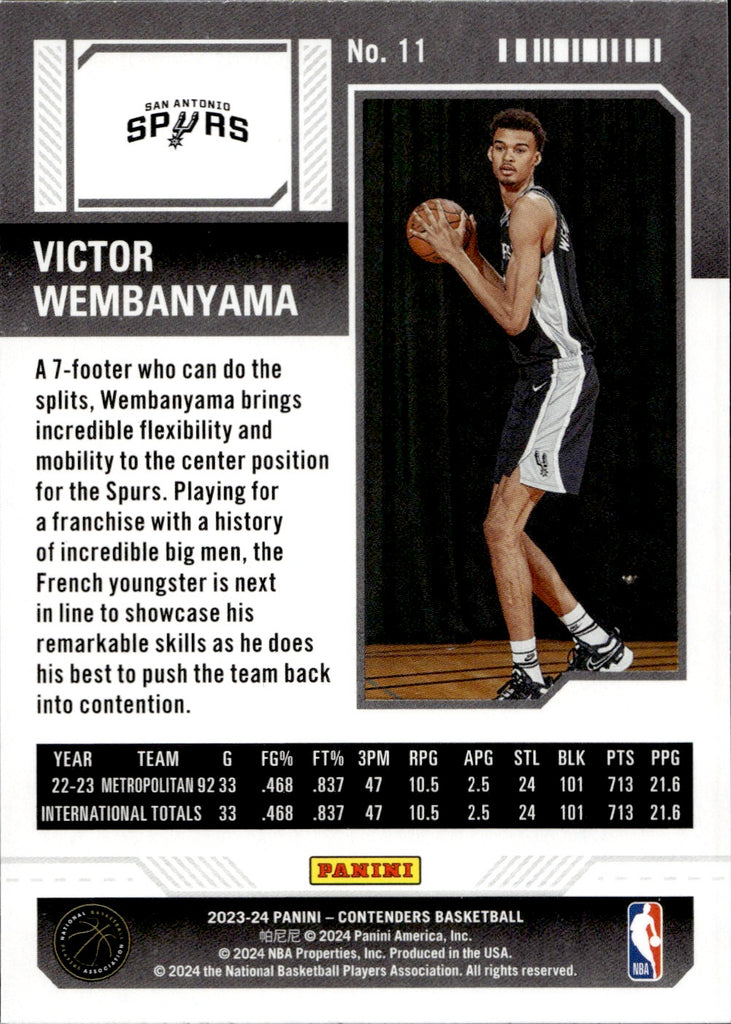2023-24 Victor Wembanyama Panini Contenders SEASON TICKET ROOKIE RC #11 San Antonio Spurs